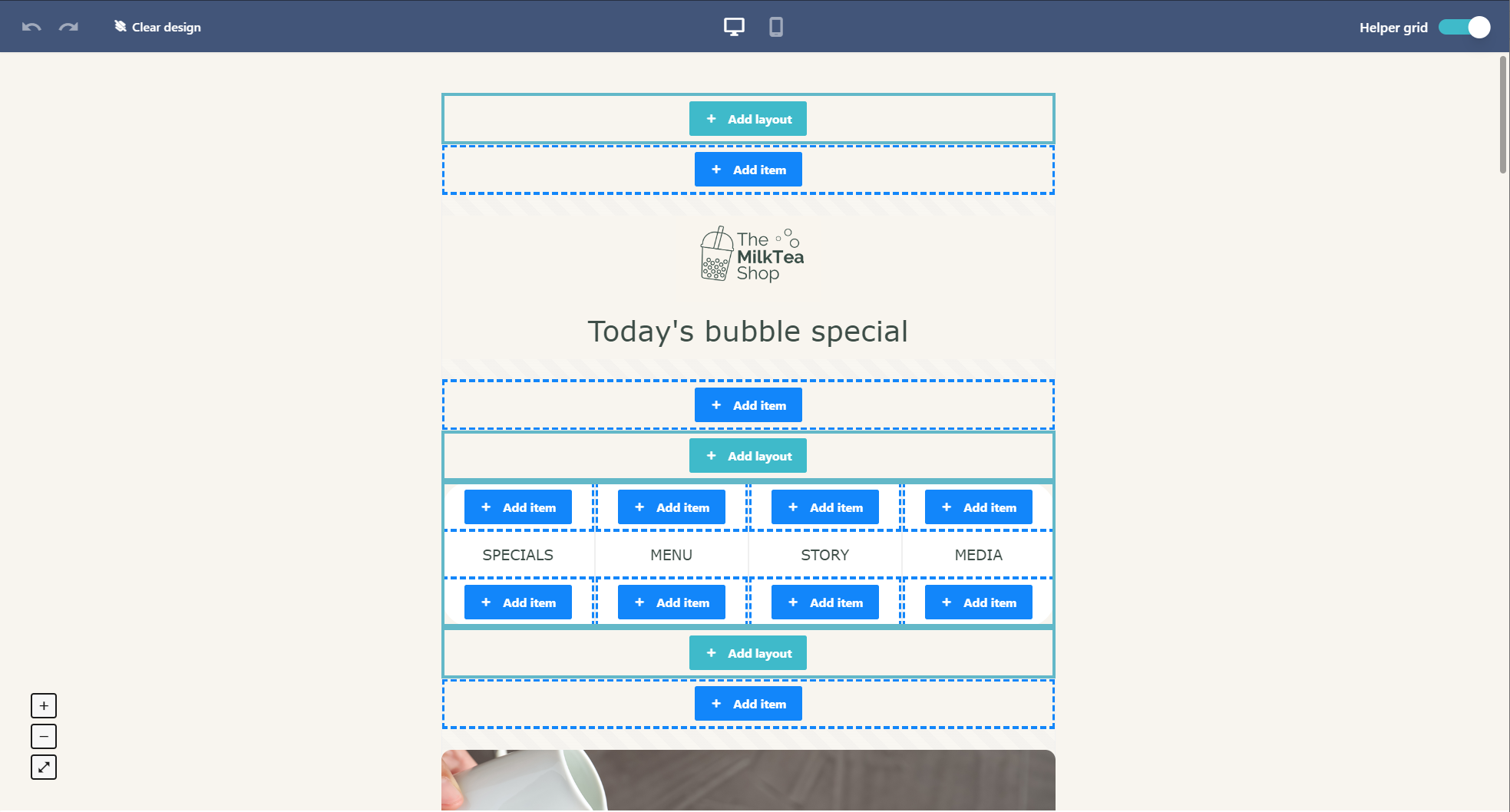 Moosend’s email editor operates as a modular, grid-based system that separates structure from content. Users first define the email layout using structure blocks (full width, half columns, thirds), then populate these structures with content items like images, text, buttons, countdown timers, and videos.