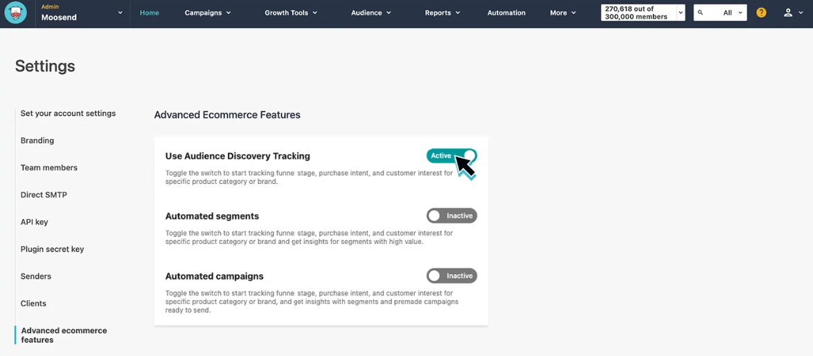 A unique feature is “Audience Discovery,” which uses AI to automatically categorize users into segments like “High Purchase Intent” or specific funnel stages based on website activity. The platform maintains these segments with updates occurring daily or weekly as subscriber behavior changes.