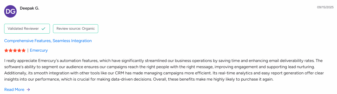 Unlike self-service platforms, Emercury provides consultative support across its plans. The support team includes professionals familiar with affiliate marketing and lead generation challenges. They offer strategic guidance on list hygiene, engagement optimization, and compliance requirements.